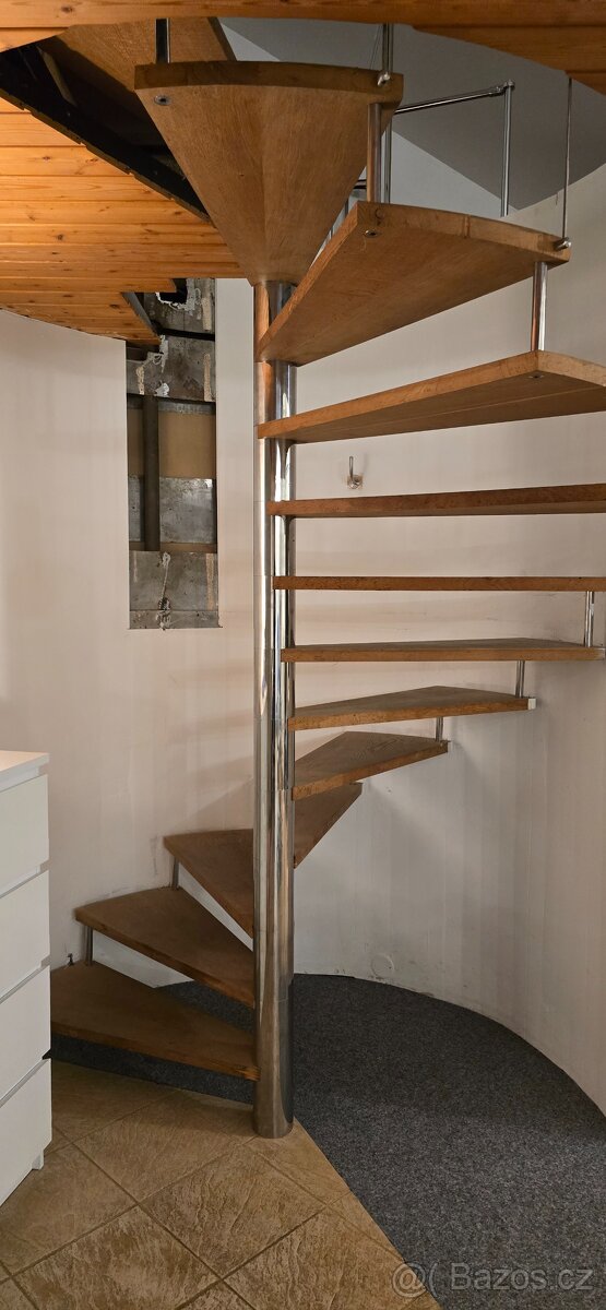 Prodám tocite schodiště 270 stupňů. Průměr 170cm. Výška 247 cm. Průměr středu 10,2 cm. 13 stupínků á 17,6 cm. Nerez s dubem. Zakázková výroba.