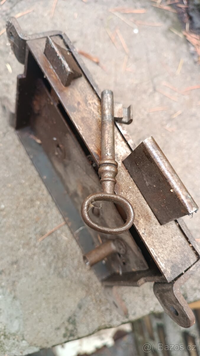 Prodám zámek na histocke dveře např na chalupě, 30. až 50. léta. Plně funkční na dozický klíč Zvláštní montáž na povrch dveří.