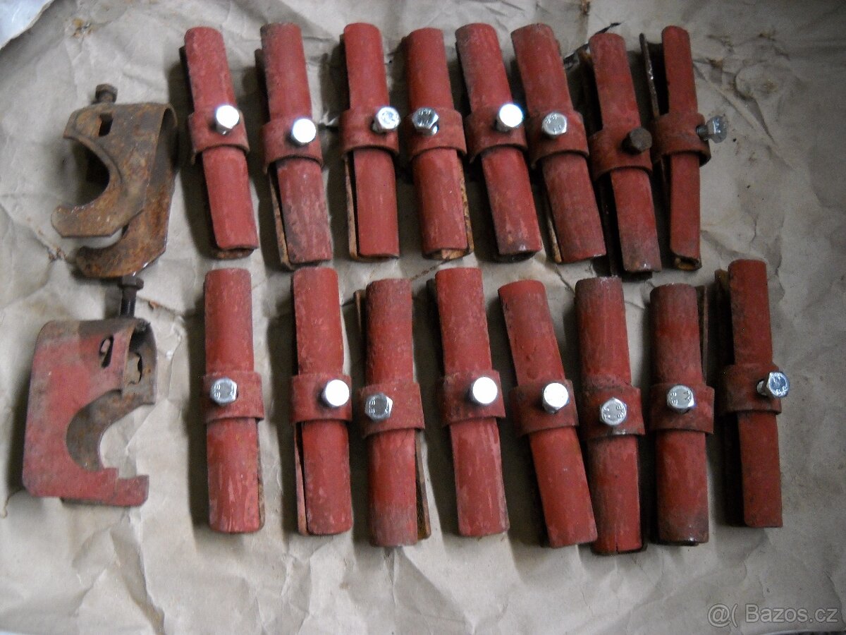Nabízím 10 spojek-doutníků a 30 kusů pěkných funkčních žabek na spojování trubkového lešení jih Brna