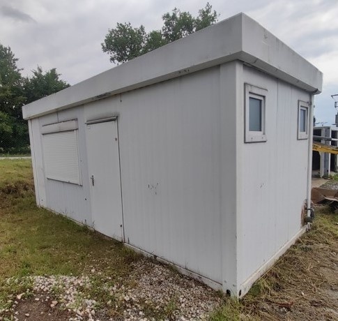 Prodám zateplený kancelářský kontejner, možno využít jako sklad, kancelář, vrátnici, šatnu, apod. Rozměry (délka x šířka x výška) 6x3x2,7m. Tl. obvodových stěn 70mm, vnitřní příčky tl. 40mm. Vnitřní vybavení PVC, WC, umyvadlo, el. ohřívač teplé vody, svítidla, přímotopy, el. rozváděč, jističe, možno připojit na elektriku, vodu, kanalizaci.