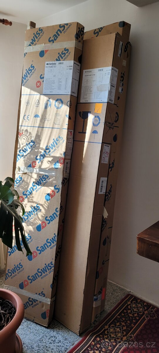 Prodám úplně nové sprchové dveře do sprchového koutu značky Sanswiss rozměry viz foto původní cena 15 000 kč vice info po telefonu.