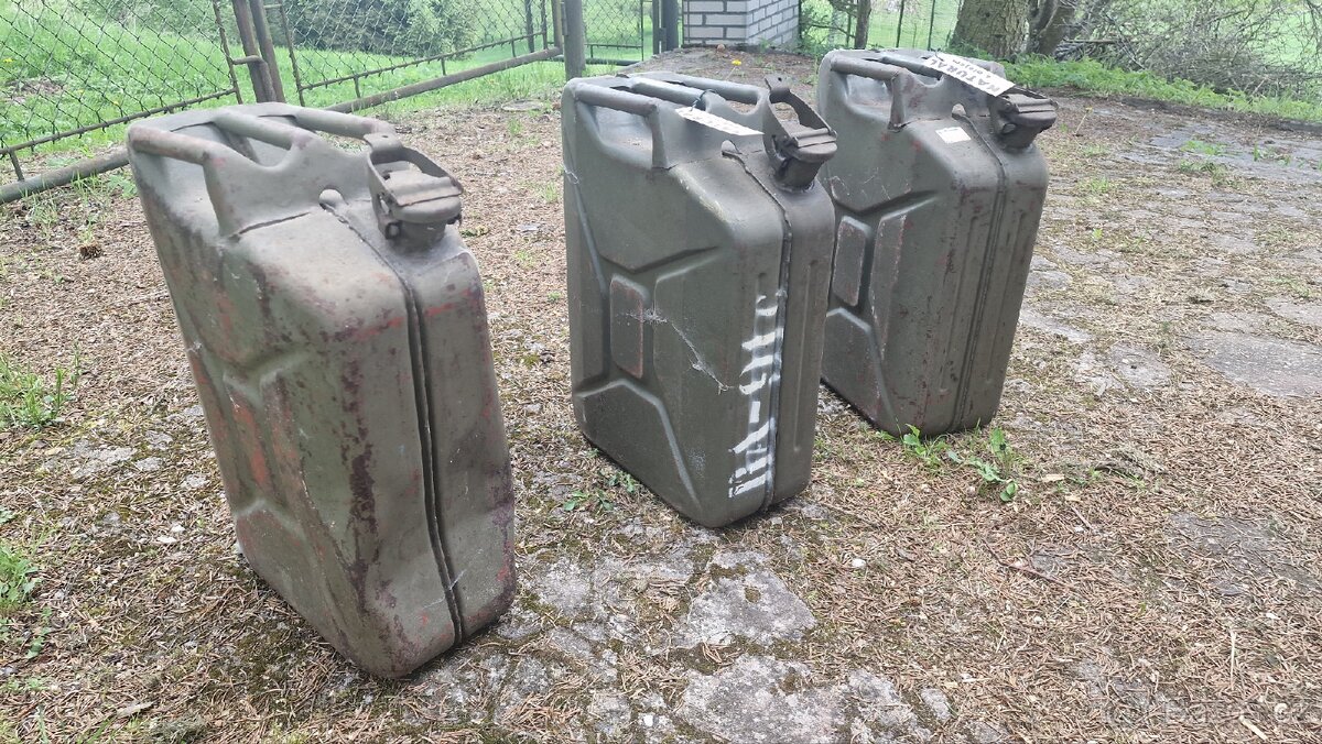 3 ks 20 l plechové kanystry a 150 Kč dohromady 400 kč