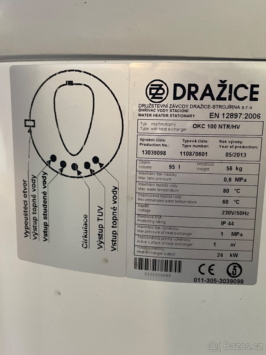 Prodám bojler Dražice, typ OKCE 125 S - [29.12. 2025]Prodám 3.roky starý bojler: Dražice, typ OKCE 125 S stacionární, objem 125L