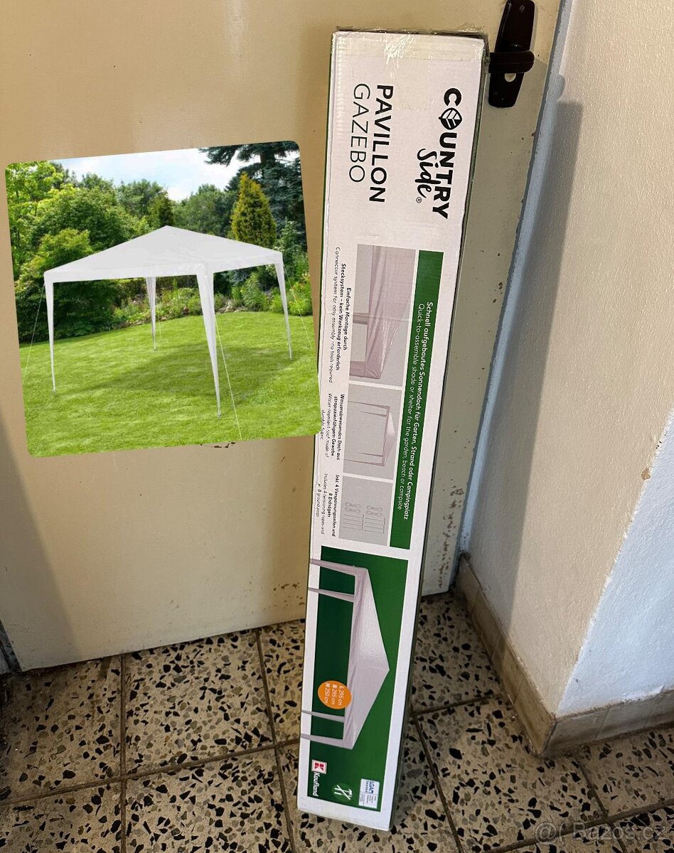 Zahradní altán s bočnicemi - [9.11. 2025]Altán byl použity pouze jednou. Nejlépe osobní předání. Rozměr 290 x 290 x 250cm