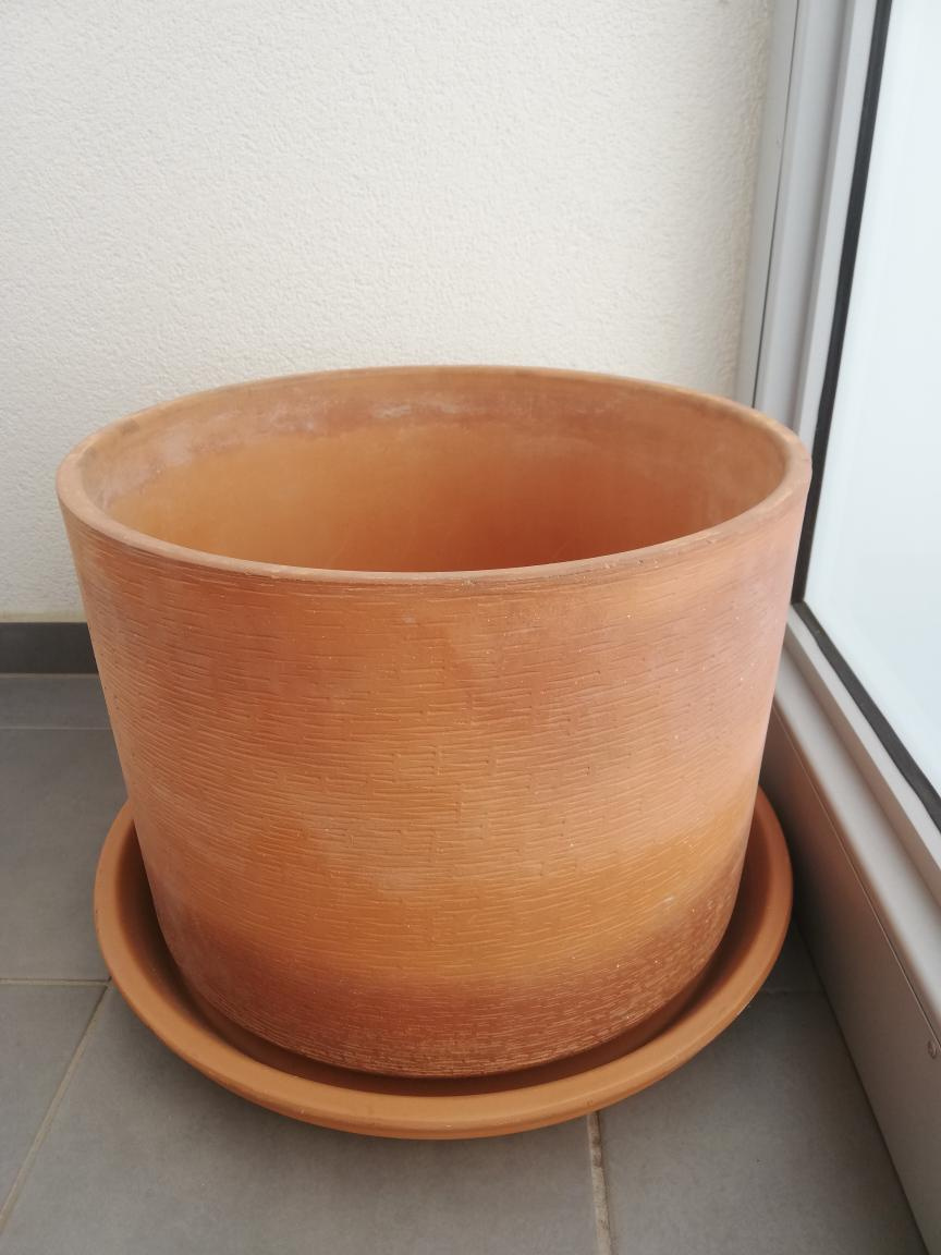 Materiál terakota, vyrobeno v Itálii. Průměr 41cm, výška 32cm + 6cm podmiska - NOVÁ, nepoužitá (průměr 46-47cm). Lze i pro venkovní použití. Květník použitý 1 sezonu na balkoně, již nevyužiji. Pouze osobní odběr v Plzni.