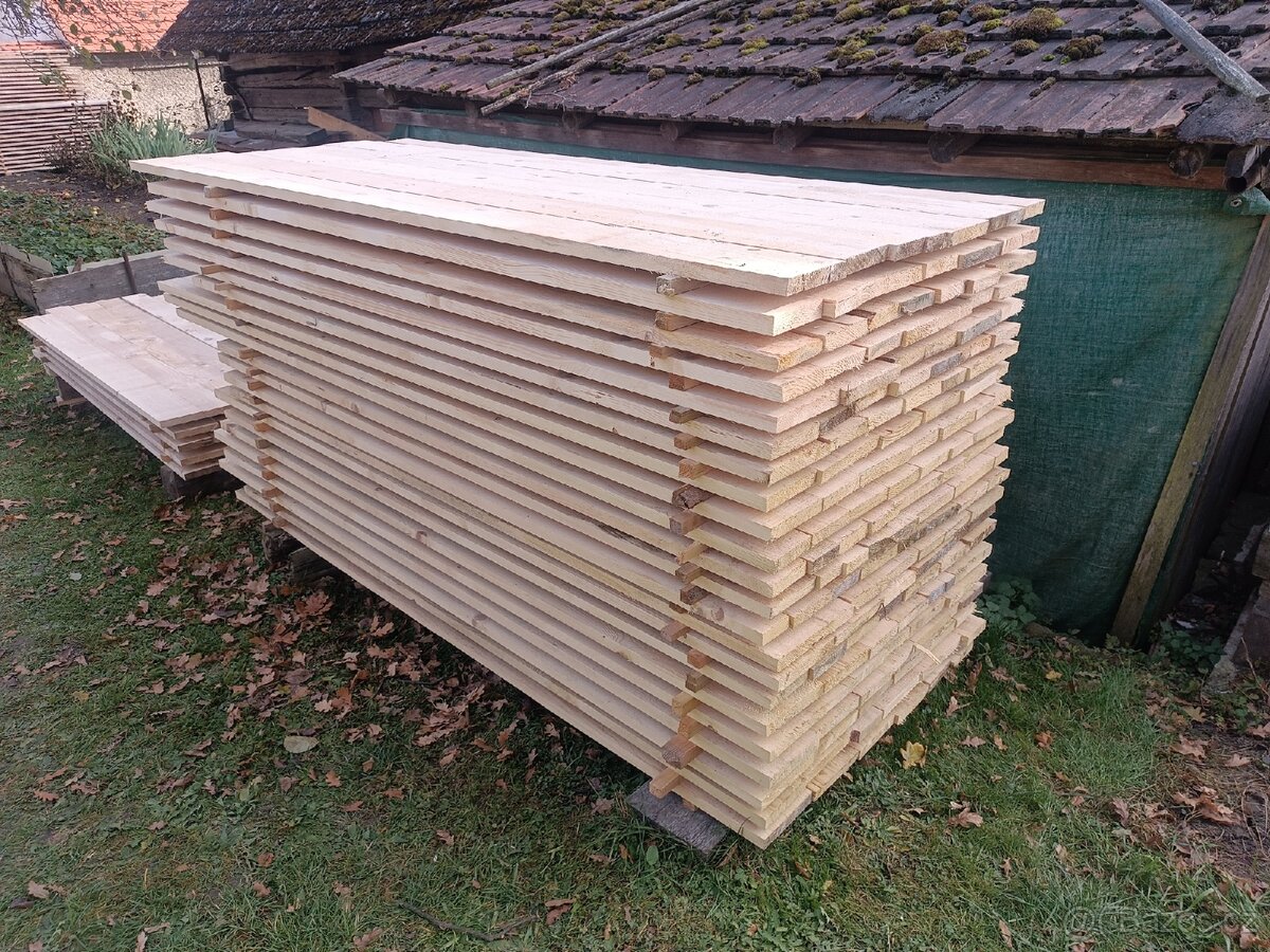 Prodám stavební smrková prkna síla 2,5cm, různé šířky, délka 3,2m a 2,2m. Cena za 1m3.