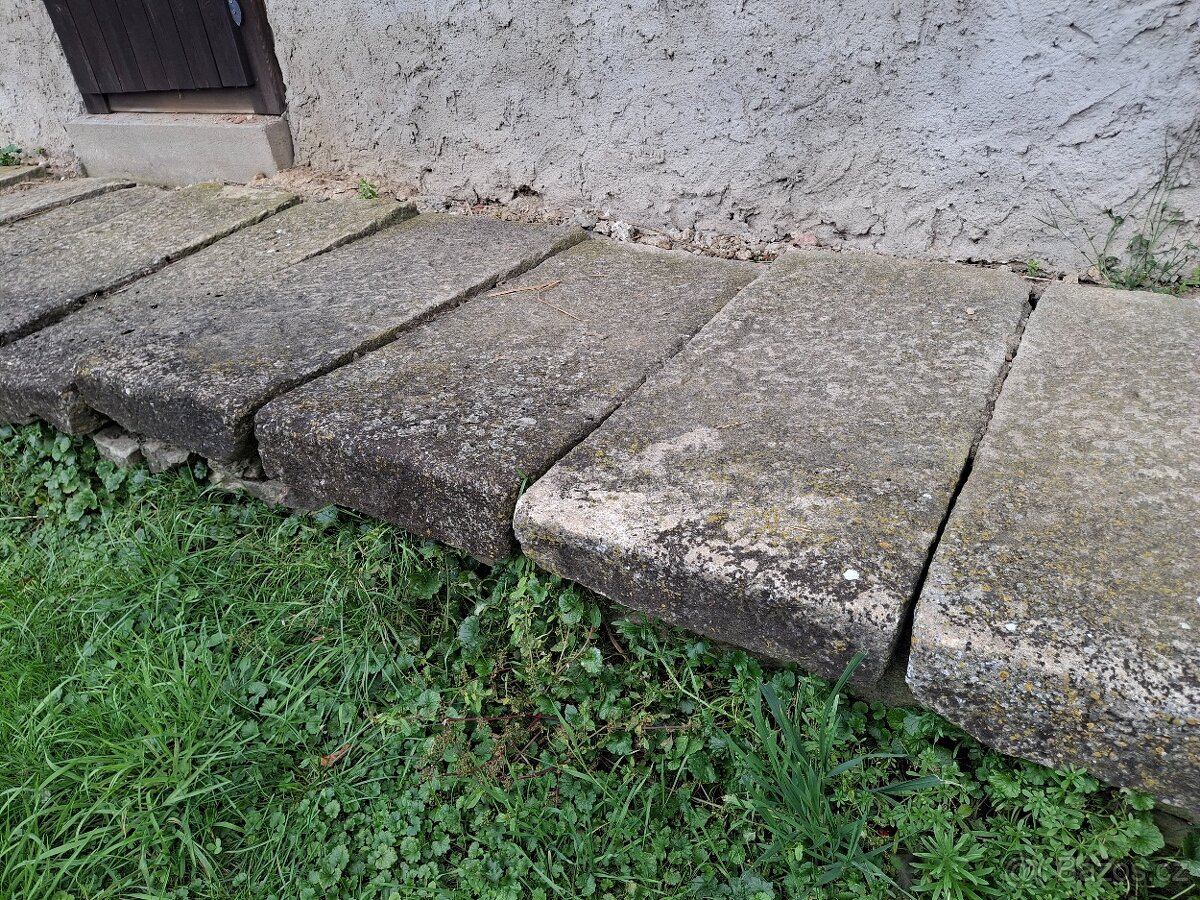 Rozmery šíře 40-60cm delka 100cm síla dlažby cca 12cm.Celkově 25m2. Prodej pouze jako celek. Cena za 1m2