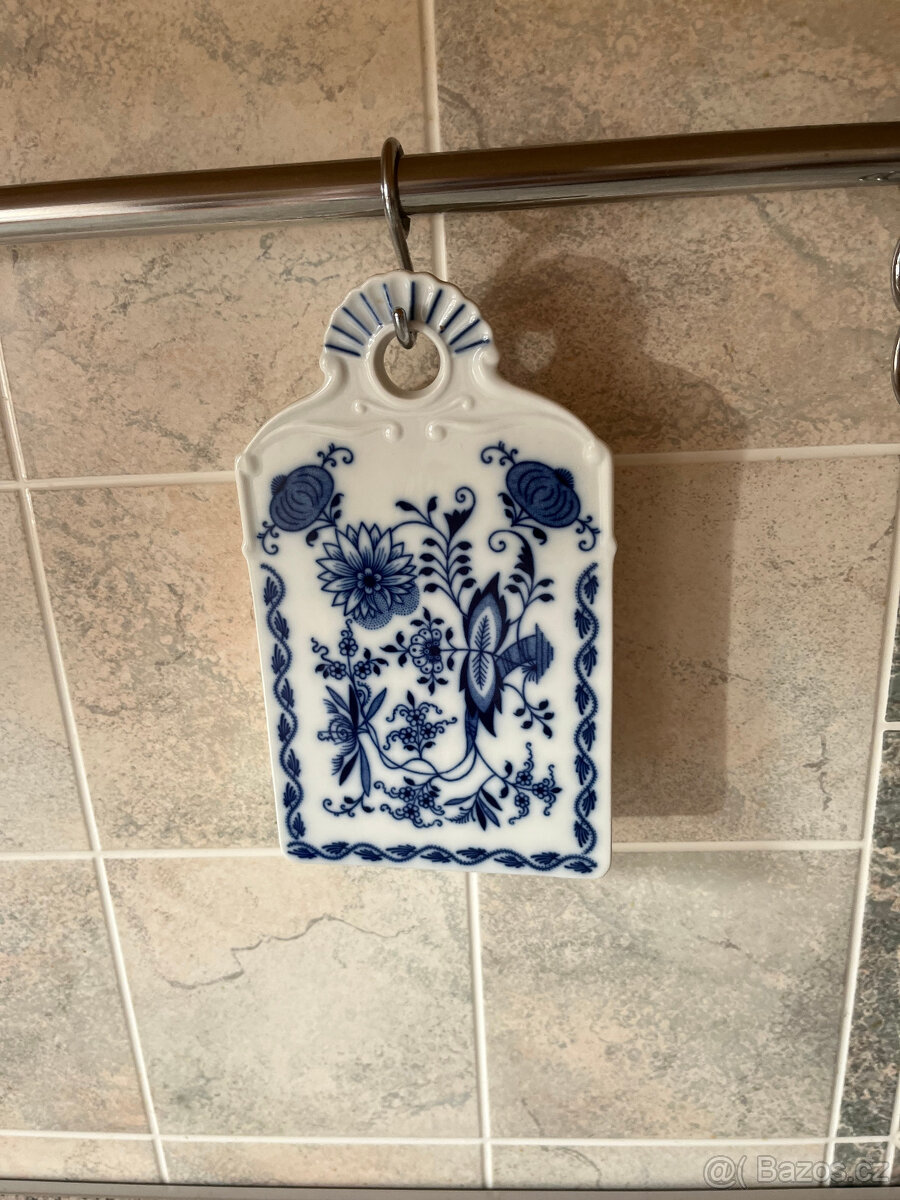 Prodám cibulákové prkénko za 300,-Kč,stojánek na ubrousky za 300,-Kč a svícen v.15 cm za 200,-Kč.