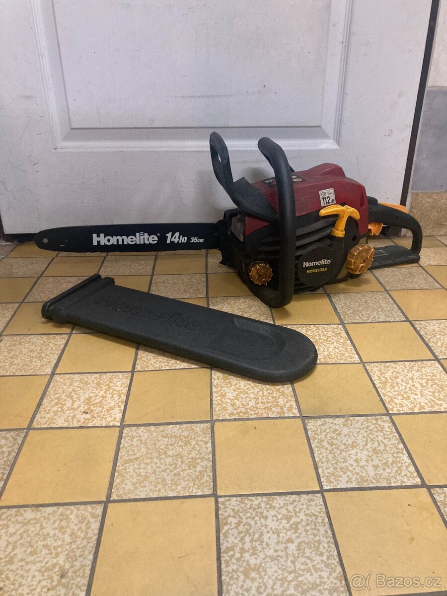 Prodám motorovou pilu Homelite. Pila byla velmi málo používaná. Jedná se o 2-taktní motor 33 cm3, výkon 1.4 kW / 1.9 PS, délka lišty 35 cm. Původní cena 3.000,-Kč. Bohužel nemohu najít řetěz. Preferuji osobní odběr (Holice), po domluvě v Hradci Králové, na SMS moc nereaguji.