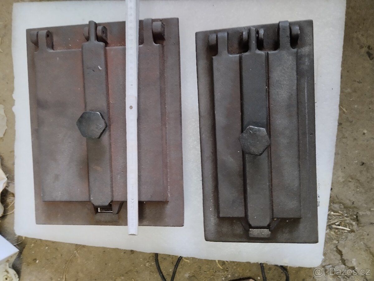 Velká přikládací a popelníková dvířka.