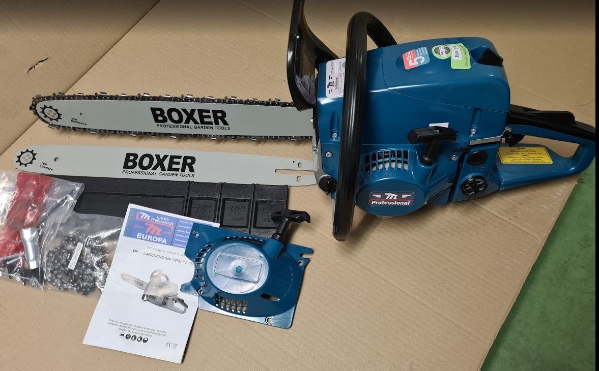 + náhradní lišta a řetěz, kompletní starter, nářadí a návod k obsluze.