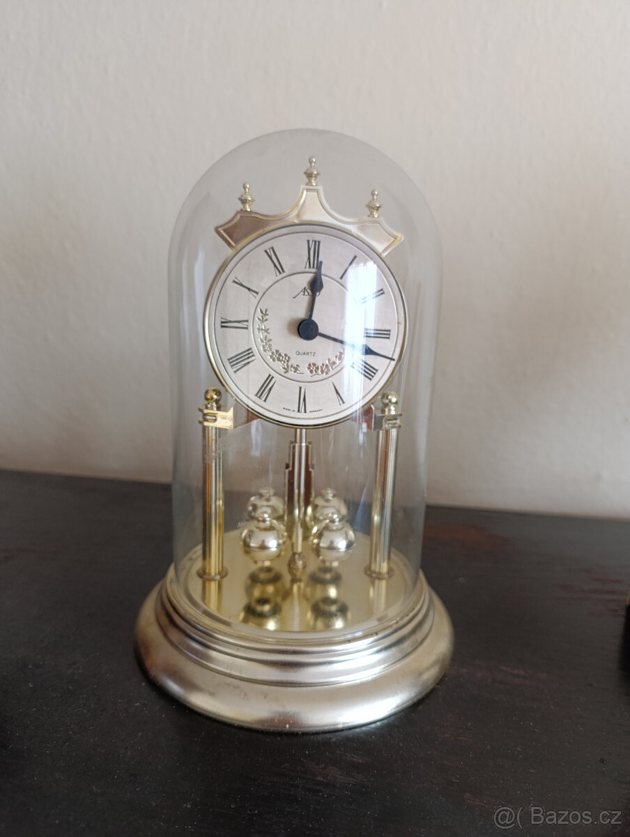 Prodám kyvadlové stolní hodiny v top stavu,chod zajištuje Quartz,zlatá barva s černým číselníkem.Jen osobní!předání