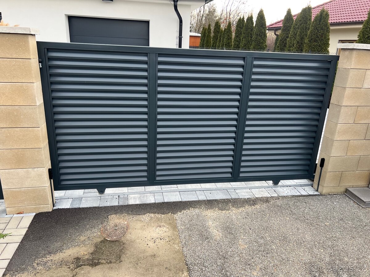 Posuvná brána, křídlová brána, lamely, profily, tahokov, zinek, hliník, železo…. Lakování epoxid a polyuretan, výpalky na míru pomocí cnc