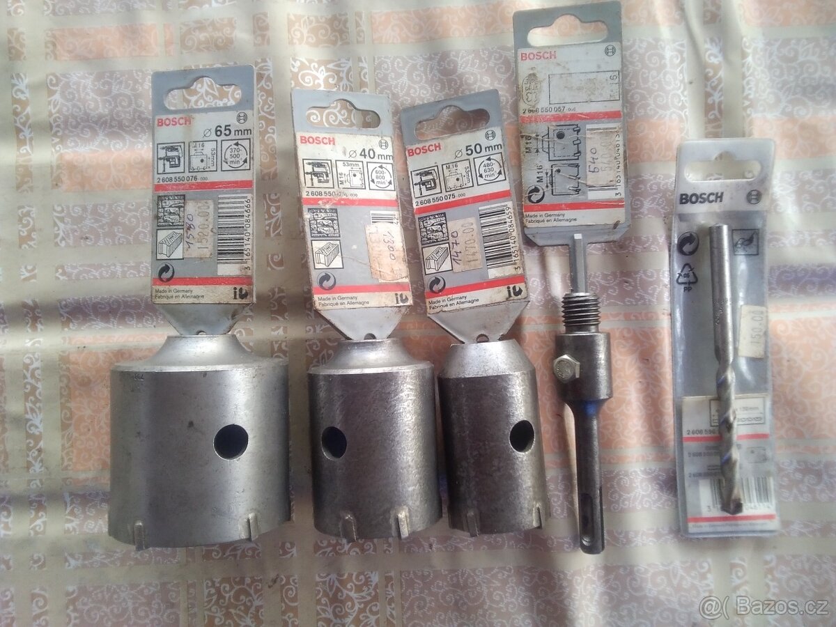 Prodám-nové vrtací korunky bosh,průměr 65-1600kc.50-1400kc, 40-1200kc,drzak korunek 400kc, vrták 8mm.-40kc. tel. 704718640 Mělník.kliknete na další moje inzeráty.