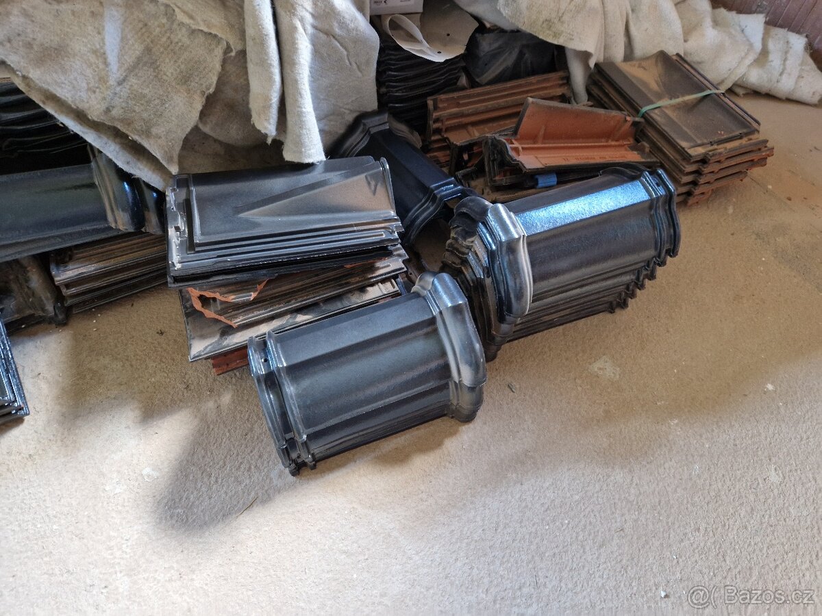 Typ condition 12 břidlicově černá glazura + hřebenáče a nějaké krajní levé a pravé tašky.
