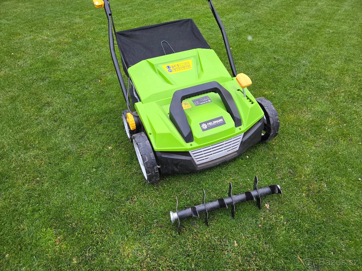 Prodám párkrát použitý elektrický vertikutátor Fieldman FZV 4003-18E na malé ploše cca 50 m2. Má dva výměnné válce (nože, pružinky). Snadno se vymění. Imbus pro výměnu je po ruce na madle.
