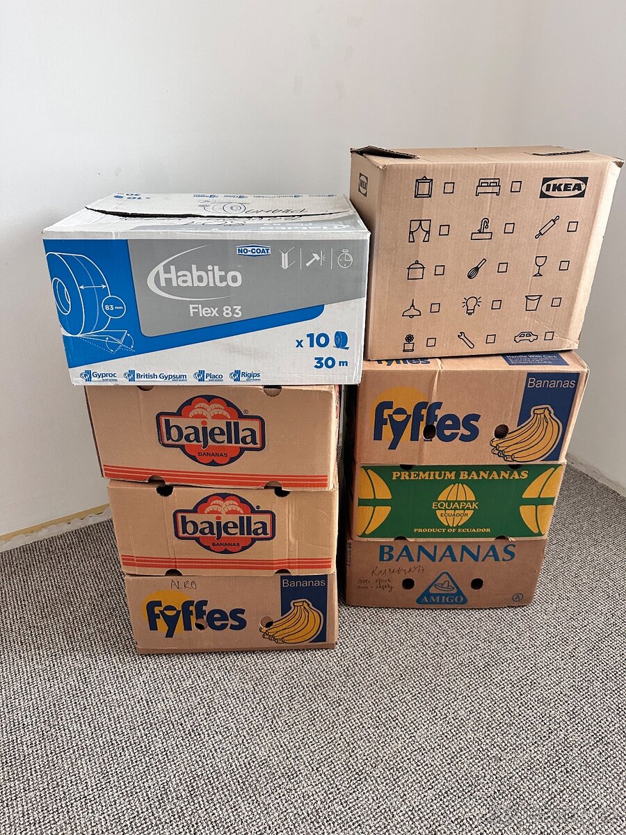 Nechám za láhev bílého vína banánové krabice a krabice na stěhování. Převzetí Brandýs nad Labem.