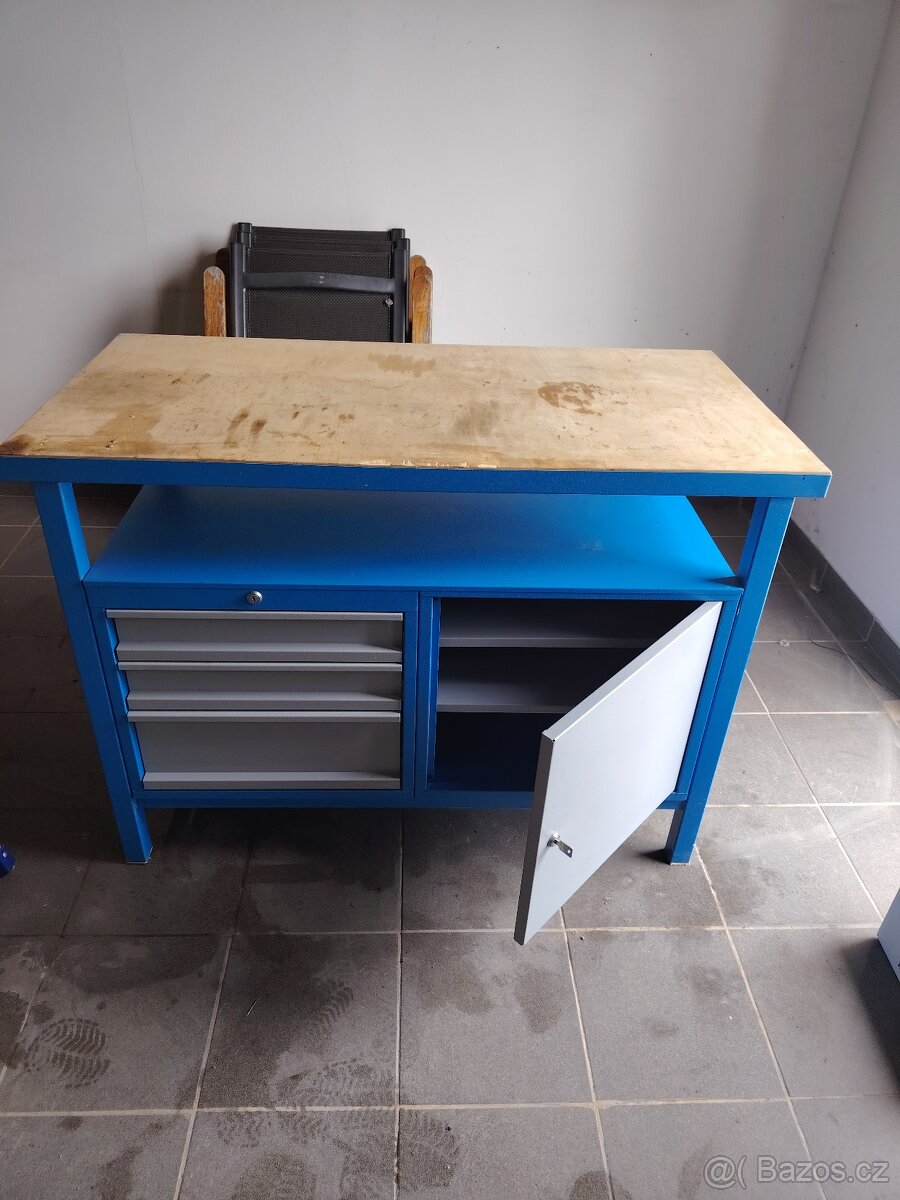 Prodám pracovní stůl do dílny. Ocelová svařovaná konstrukce. Nosnost 250kg, Rozméry