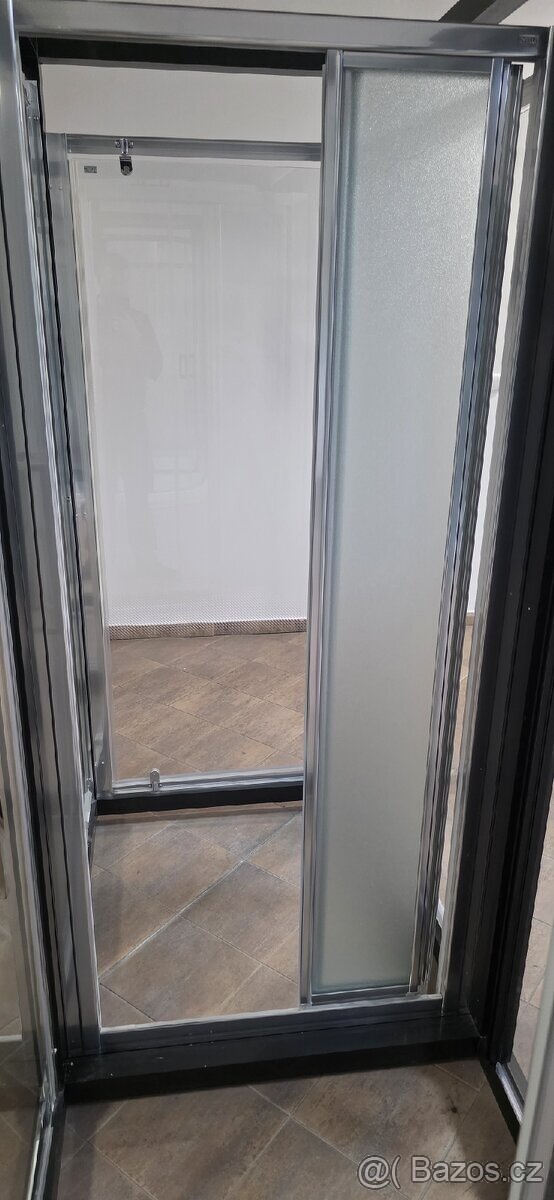 Zástěny ze skel 4 mm, 3 díly, zasunovací z obou stran.