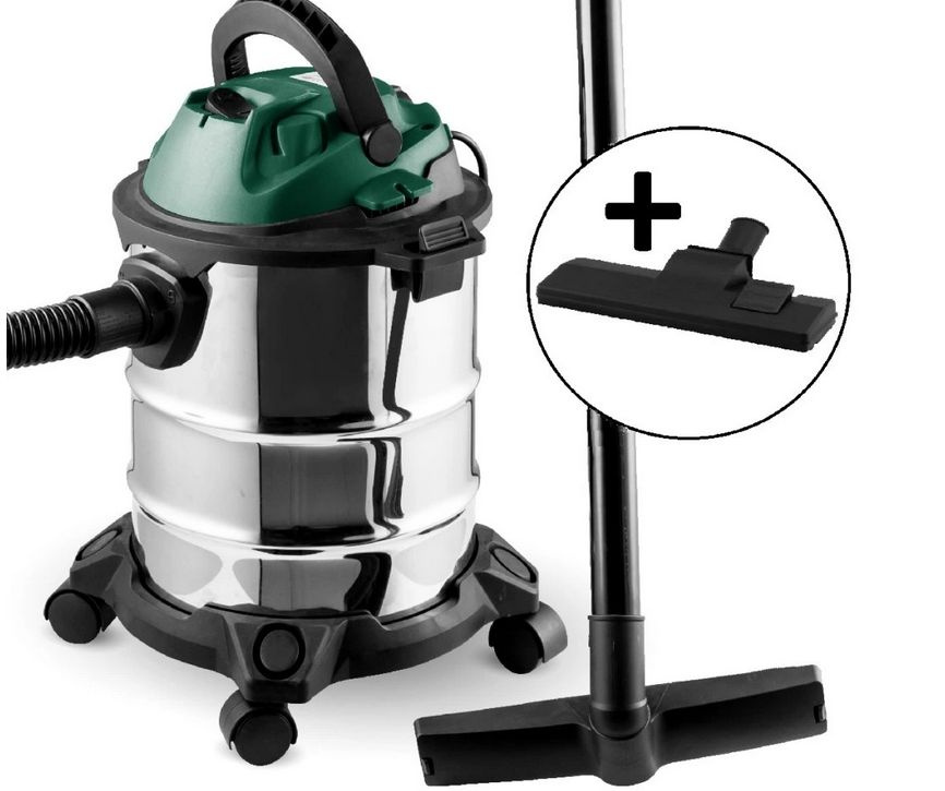 příkon 1200W, nádrž 15L, funkce foukání, kolečka pro snadnou manipulaci, 1x nástavec na mokré čištění podlah, 1x podlahová hubice, 1x kombinovaný kartáč, látkový filtr+ houbový filtr