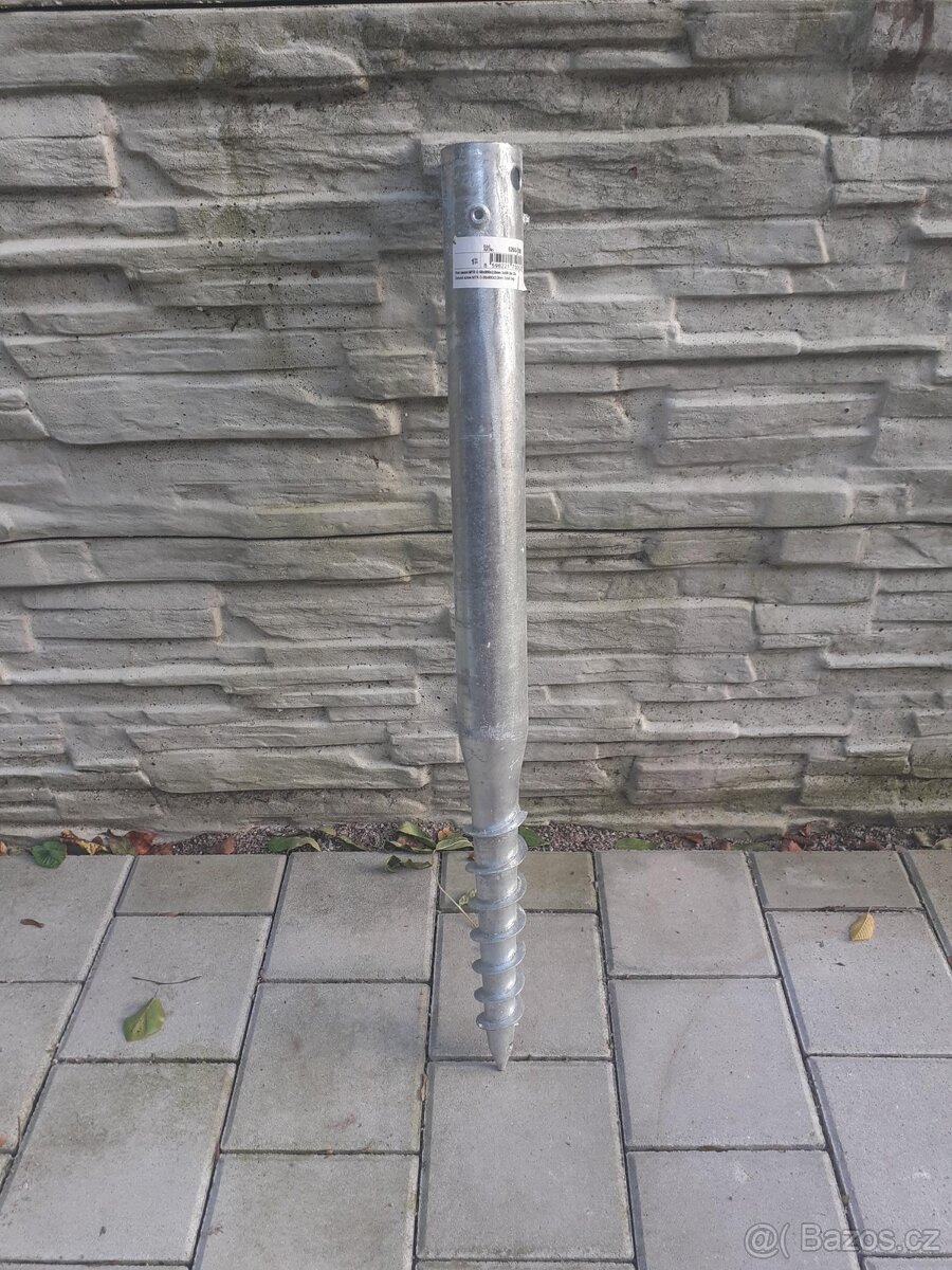 Kovové zakládací patky / zemní vruty - [2.1. 2026]Prodám velmi robustní zakládací patky / alterantiva zemních vrutů. vkládají se do děr vyvrtaných zemním vrtákem. Průměr patky 160mm. délka 90cm, sloupek trubka 80x3. 9ks. Cena dohodou.