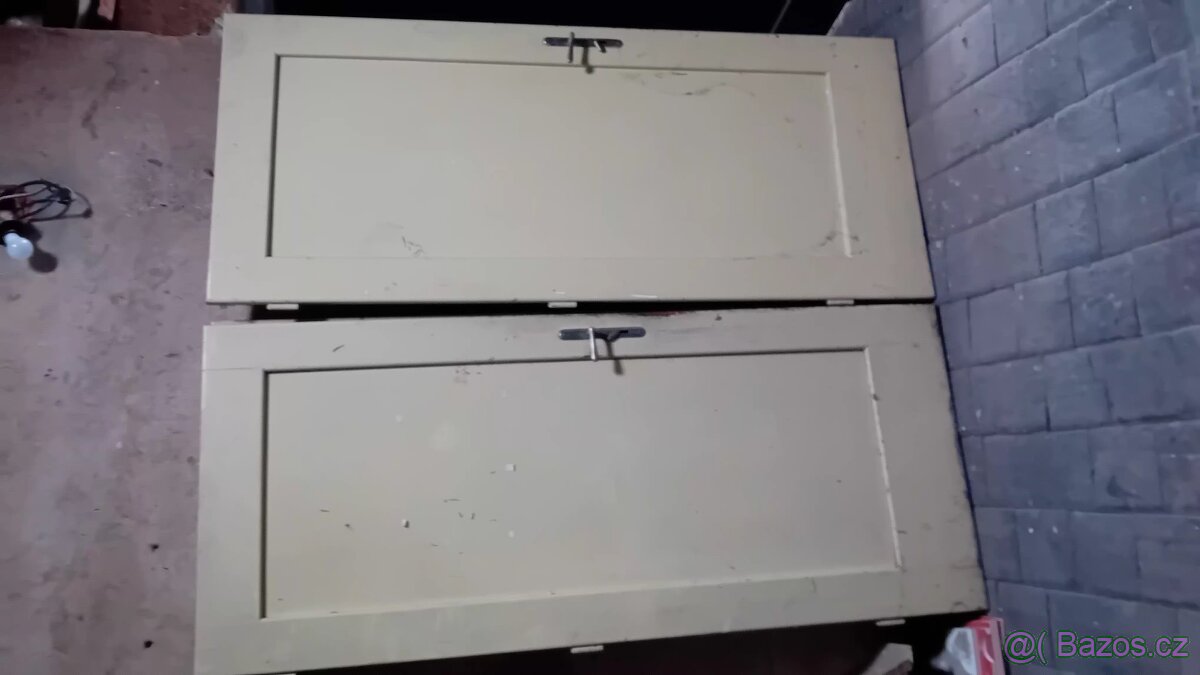Staré dveře - [31.12. 2025]Starší masivní dveře se zárubní a kováním. Prosklení čiré. Šířka dveří bez zárubně je 88cm. Výška 209cm.