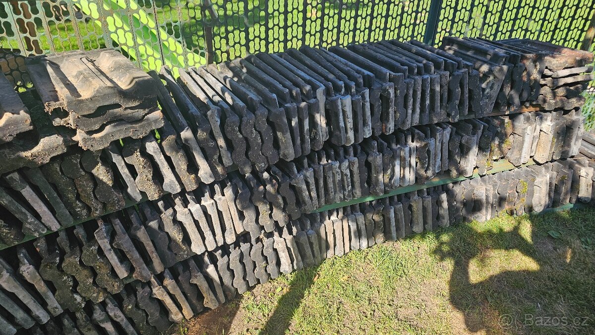 Prodám staré francouzské střešní tašky. Rozměr 42x24 cm. 200 ks + 15 půlek. Tašky je potřeba očistit od mechu. Cena za všechny 700 Kč.