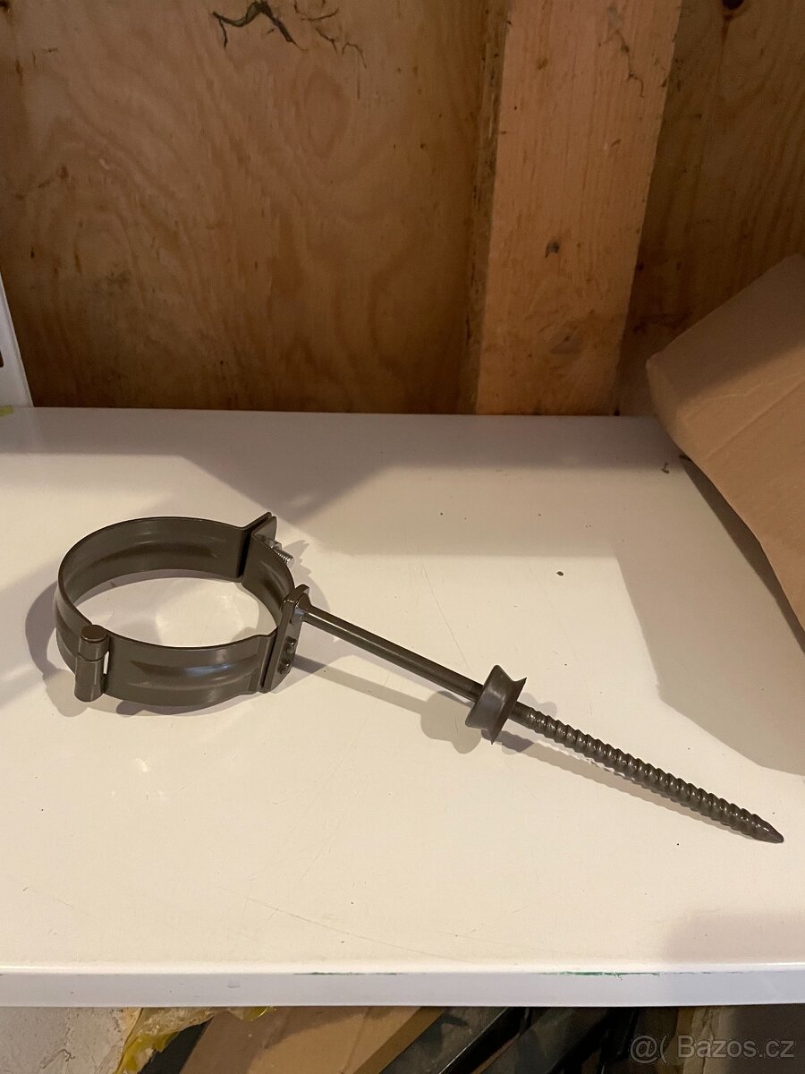 Nová objímka svodu 100, trn 200 mm Prefa, barva tmavě hnědá, k dispozici 82ks, cena za kus 91,-Kč.