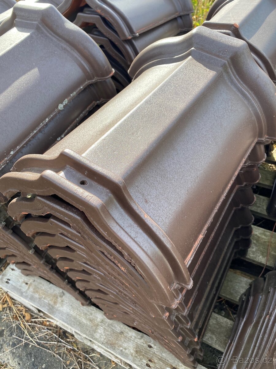Prodám Tondach hřebenáč č.3 hnědý šířka 26 cm. Spotřeba 3 ks/bm. K dispozici je 90 ks. Cena je uvedena za kus.