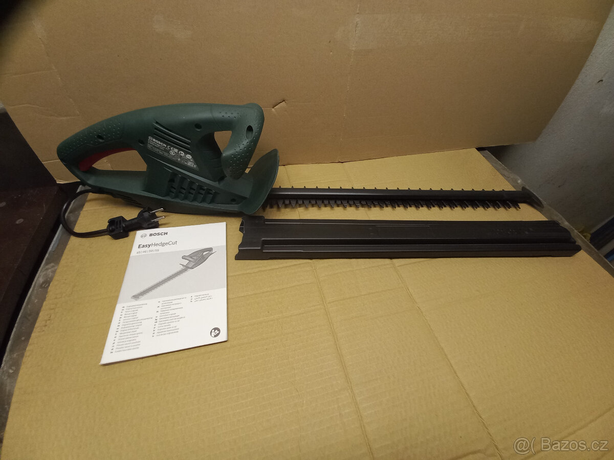 Prodám zánovní plotostřih Bosch, málo používaný. Délka střihu 550mm, výkon 450W.