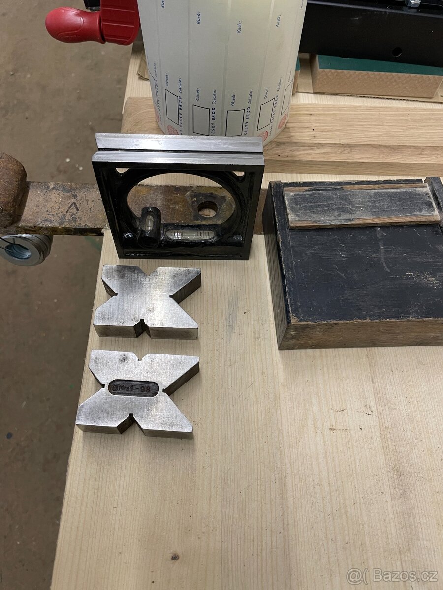Prodám strojní vodováhu 100 x100 mm 200 kč ,vrtací hlavičky 200 kč 1 ks , pevný hrot a redukci M3 100 kč 1 ks 604895875