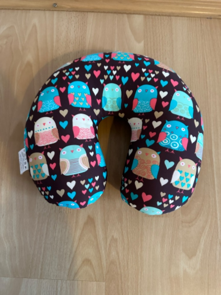 Cestovní polštář, tvar podkova. Výplň je kuličková.