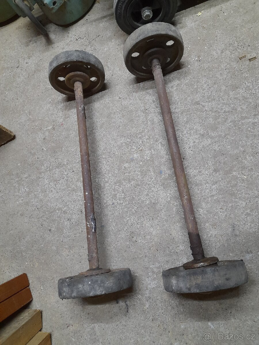 Prodám pogumovaná kolečka na ložiskách s hřídelí.Použitá zachovalá viz foto.