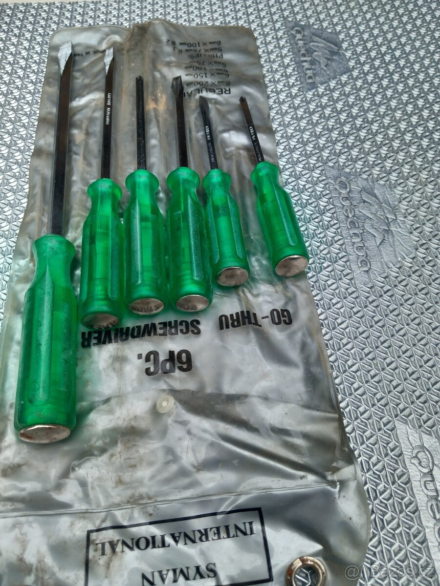 Sada 6ks šroubováků v úderovém provedení. Ploché 8mm X 200mm, 6mm X 150mm, 6mm x 100mm, 5mm x 75 mm. Křížové 5mm X 75mm, 6mm x100mm. Platí do smazání inzerátu.