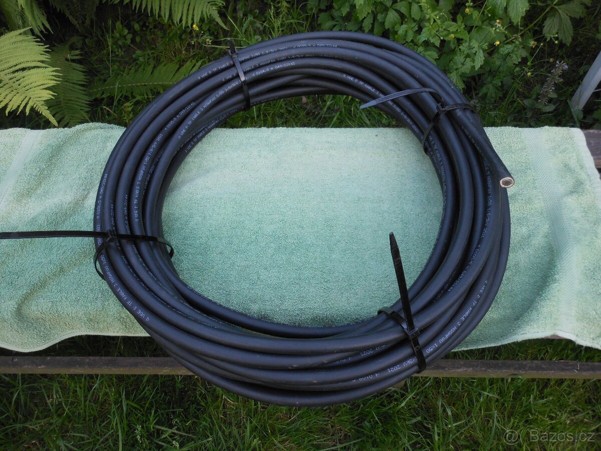 Prodám viz foto tento nový NEPOUŽITÝ gumový kabel. Technické parametry viz foto, jinak kabel má průměr 15 mm a průměr měděné žíly 10 mm. Váha je 17 kg. Jedná se o pocínovanou měď, vhodný třeba i k triodyně. Cena tohoto kabelu je 3.000,- Kč, je to polovina ceny v obchodu. Ještě 2 kusy zeleného kabelu, průměr 10 mm, průměr žíly 8 mm a délka 5 metrů každý. Cena u těchto 700,- Kč za oba anebo samostatně za 400,- Kč kus. Přikládám 12 fotek. Zboží posílám v rámci ČR i na Slovensko. Více informací emailem nebo telefonicky. Platí do vymazání.