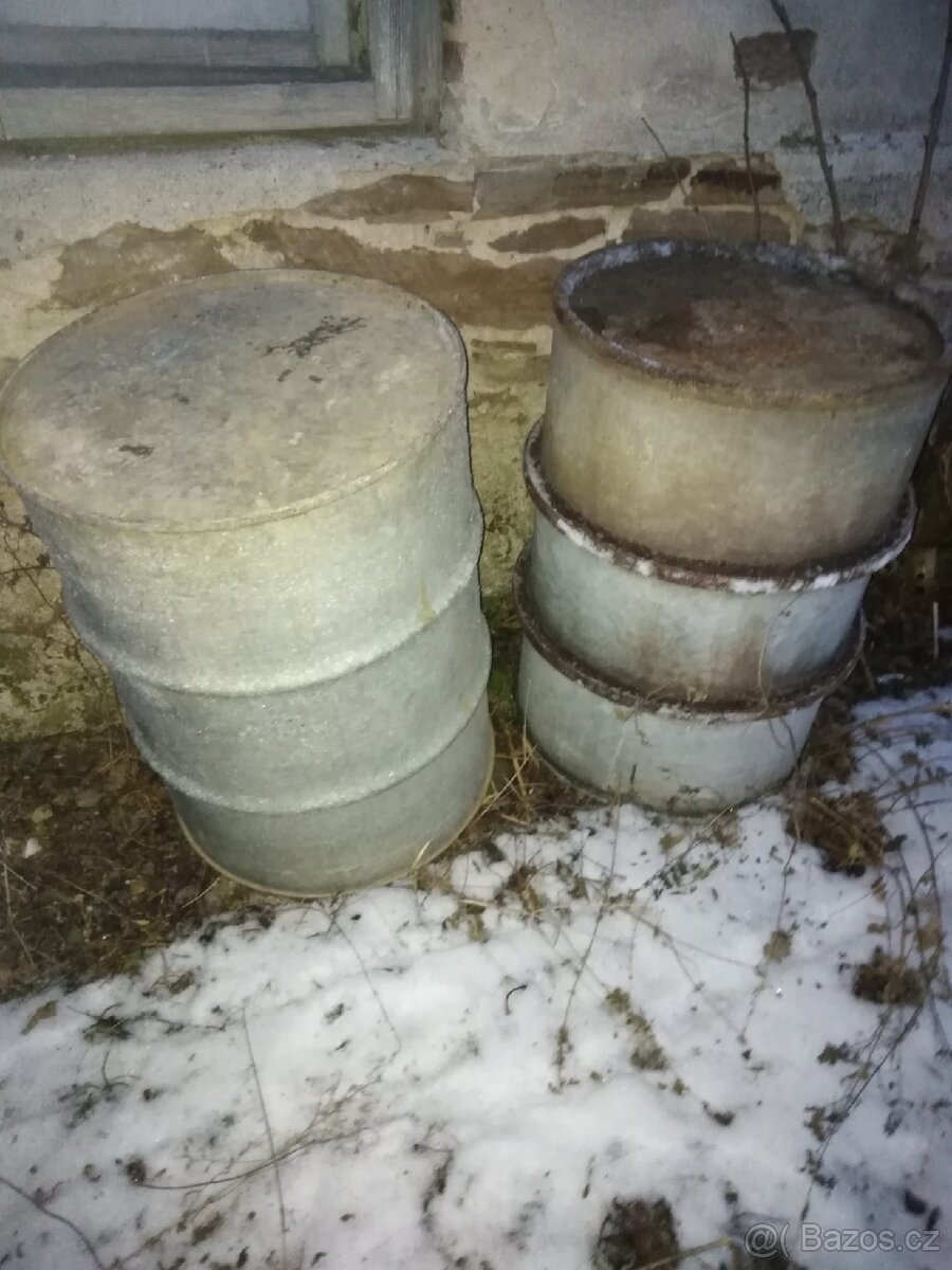 Prodám 200 l plechové sudy - [4.2. 2026]Prodám plechové 200 l sudy s odnímatelným víkem a uzavíratelné sponou. Sudy jsou z venku i zevnitř lakované. Jsou vhodné na vodu na zahrádku, ale i na uskladnění obilí, popř. krmiv do krmelců.
