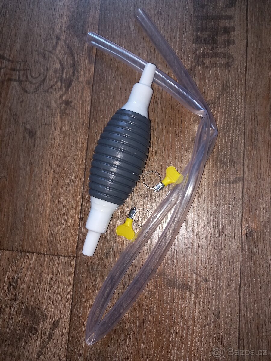 Nabízím nový praktický ruční přečerpávač kapalin, vhodný pro přečerpávání vody, olejů i paliv. Pomocí přečerpávače lze snadno vytvořit v hadicích podtlak, potřebný k zahájení samotného přečerpávání.