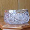 Mísa kulatá z broušeného olovnatého skla mírně zúžená nahoře - výška 9cm, obvod nahoře 57cm, dole 63cm. Bez závady.