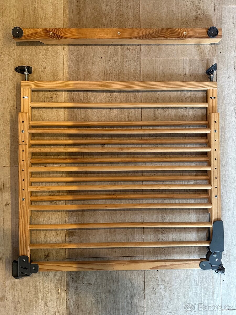 Nastavitelná šířka zábrany pro průchody o šířce od 75 do 104,5 cm. Je možné ji namontovat 2 způsoby: bez vrtání a šroubování jako vzpěrná zábrana nebo připevněním ke zdi. Při použití varianty bez vrtání není zábrana otevírací, je celá odejímatelná. Zůstane Vám tedy v ruce a můžete ji jednoduše opět nasadit zpět.Zábrana je bezbariérová a vhodná tak především pro horní část schodiště. Nastavitelné 4-bodové uchycení poskytuje individuální seřízení šířky na horních i spodních úchytných bodech a zábranu je tak možné použít i na klopených zdech nebo schodišťovém zábradlí.