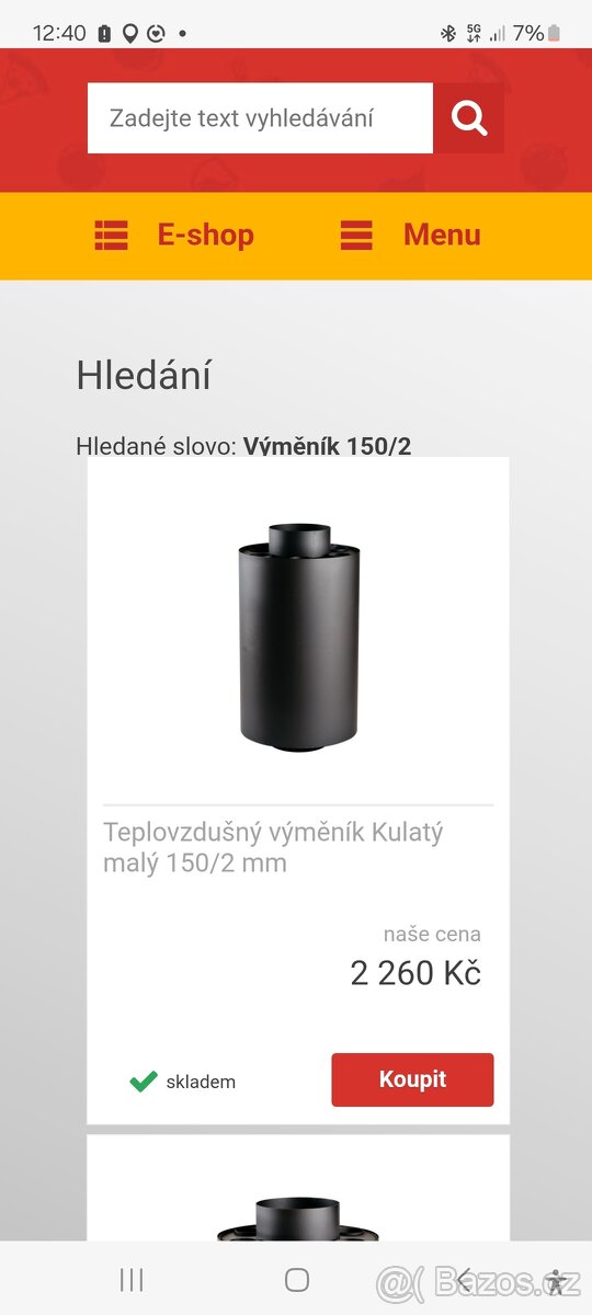 Teplovzdusny vymenik na kamna - [24.1. 2026]Teplovzdušný výměník na kamna, průměr 150mm, až 5 kW. Topeno v něm 1 měsíc. Kupován v bauhausu