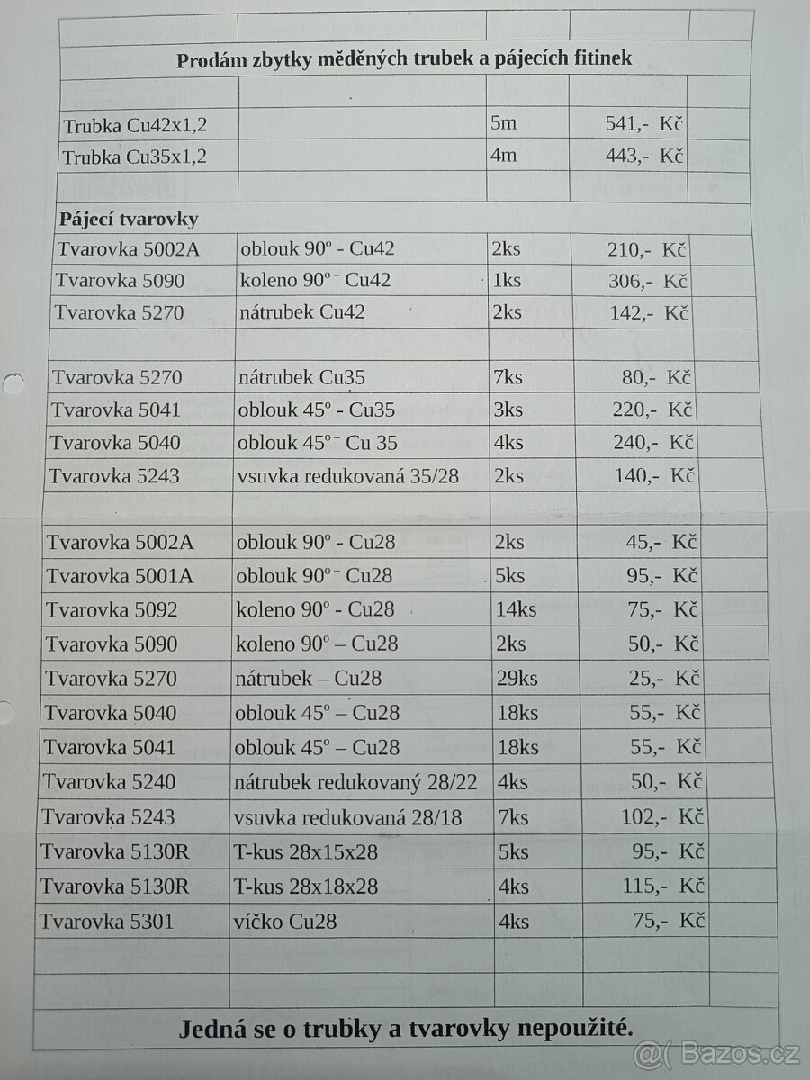 měděné trubky a pájecí fitinky - ukončení živnosti