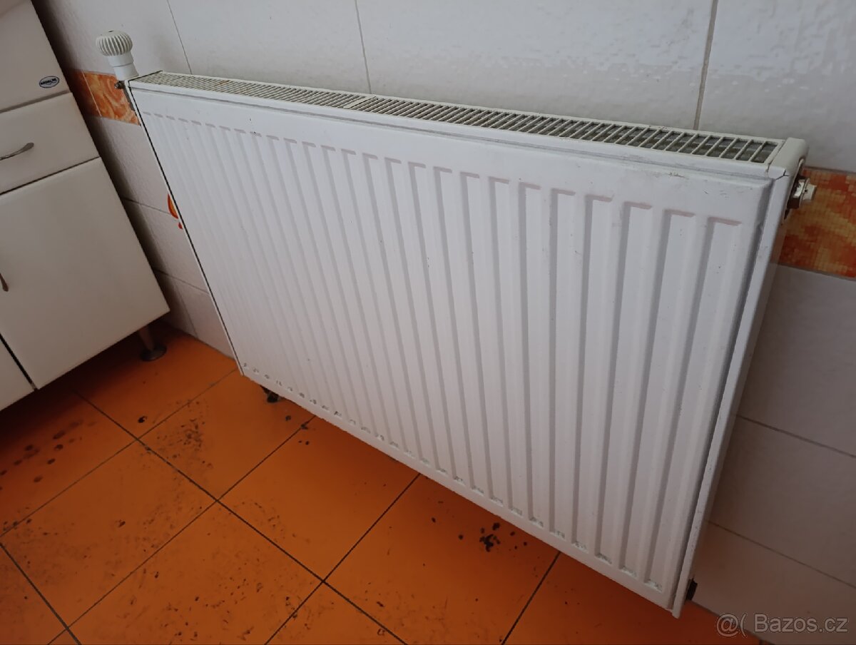 Prodám použitý plechový radiátor rozměry výška 60 cm, delka 90 cm, šířka 6 cm. K odběru 30.3. Radiátor je stále napojen na systém s vodou.