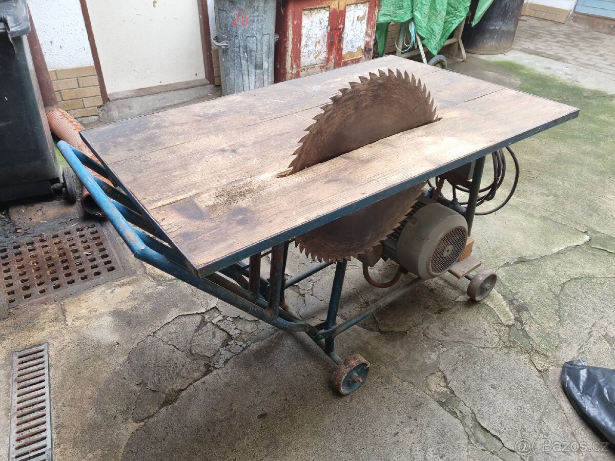 Prodám stolní pilu domácí výroby s výkonným motorem 5.5 kw a s kolébkou. Pilový kotouč 600mm /otvor 30mm.