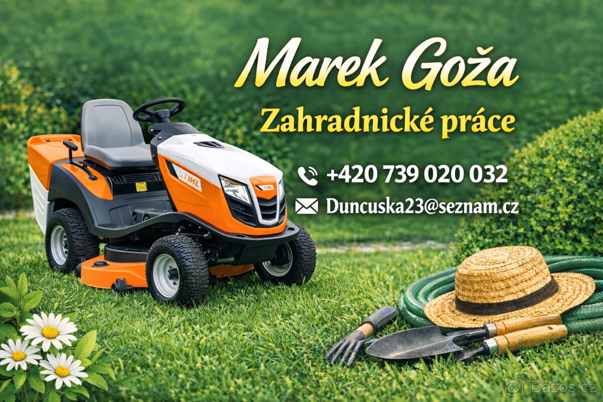 Sekání trávy, křovinořez, stříhání keřů a živých plotů, úklid zahrad.