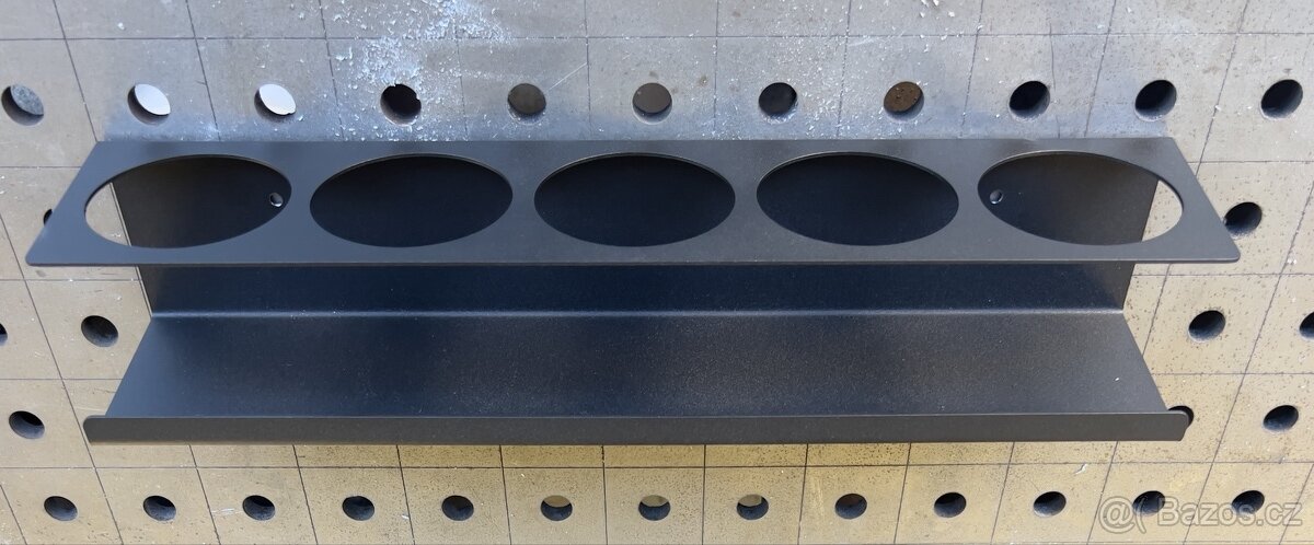 police na plechovky. kovovy drzak vesak spreju. montaz na zed, na stul. 43x10cm. pri platbe predem, cena s odeslanim na vydejni misto zasilkovny 450,-