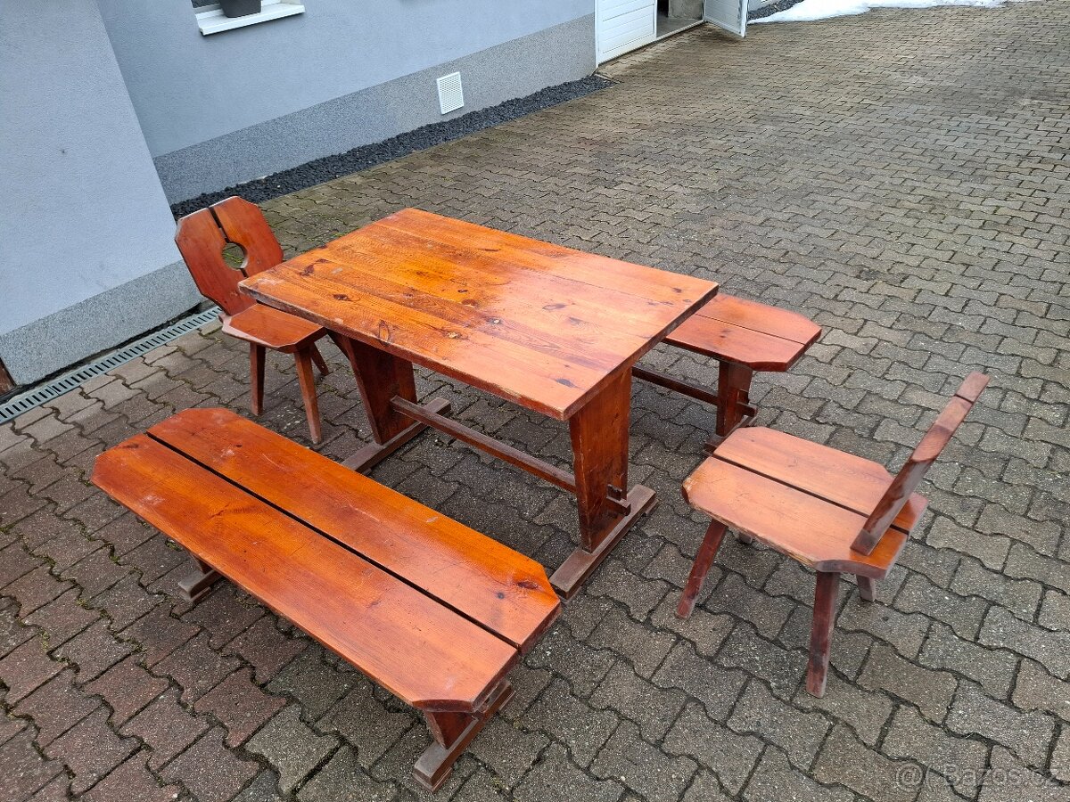 Prodám sedací set zahradní nábytek z masivu. Stůl rozměr desky 120cm /70cm cena za sadu 5tis.