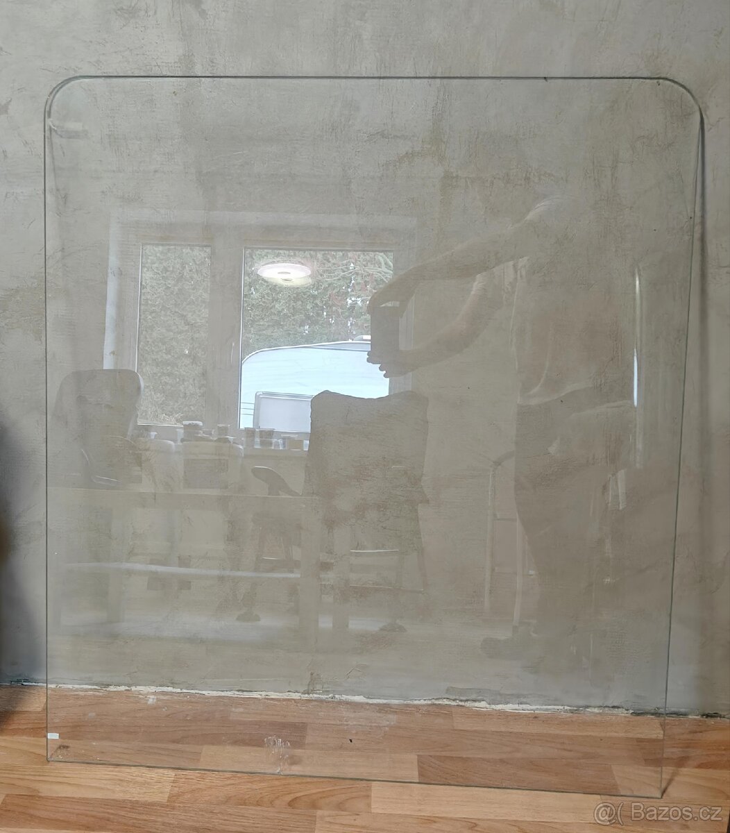 Prodám kalené sklo pod krb. Rozměry jsou: šířka 90 cm a výška 100 cm rohy jsou zaoblené a hrany jsou broušené. Jemné oděrky a škrábance od běžného používání. Síla skla je 6 mm.