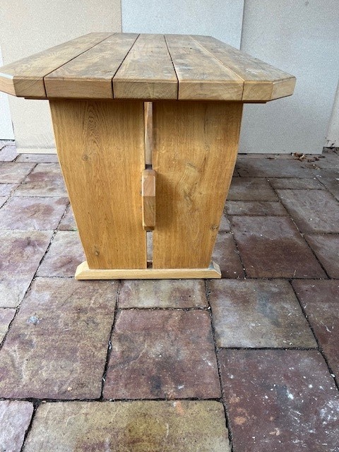 Masivní dubový stůl vlastní výroby. Rozměry tloušťka prken 4cm, 160cm délka 70cm šířka 75 výška. Při rychlém jednání sleva. Nutno nový nátěr.