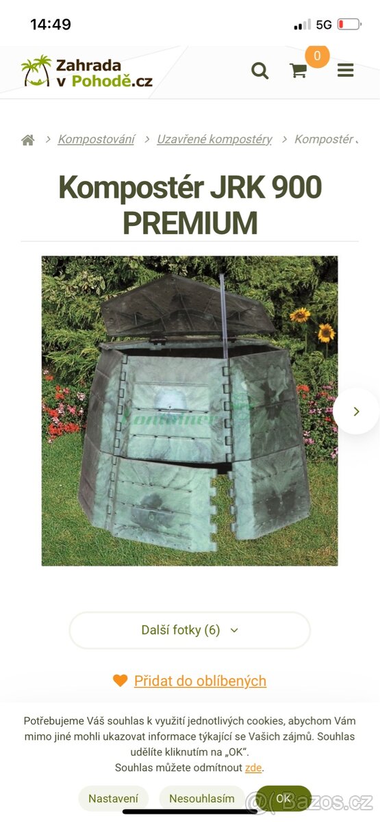 Dobrý den Prodám plastový kompostér to co je na fotu objem 900 litrů Cena 2500Kč nepoužitý masivní žádný tenký plast jak bývá u kompostéru zvykem zasvítí slunce a je po něm tento vydrží mnoho let mám vyzkoušeno Osobní odběr Konice okres Prostějov