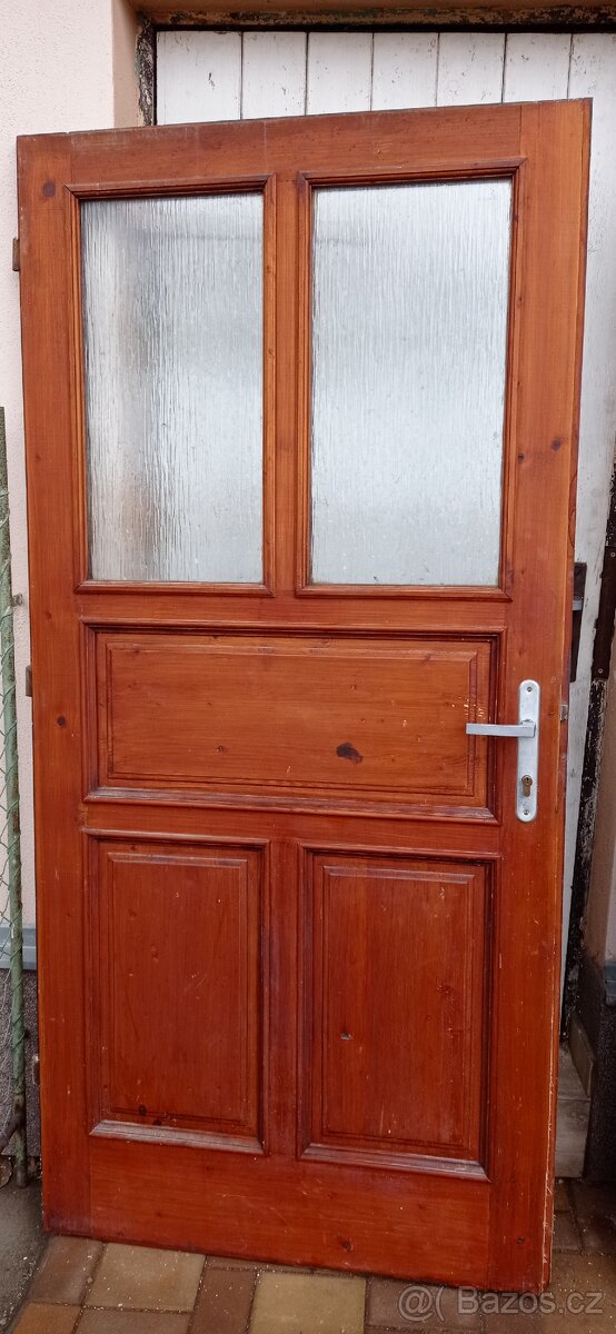 Prodám zachovalé dvoje vchodové masivní dveře, zakázkové výroby. Velikost: dveře s trojsklem 92,5 cm x 196cm, dveře s dvojsklem 92,5 cm x 198 cm. Oboje jsou pravé. Cena uvedena za 1 ks.